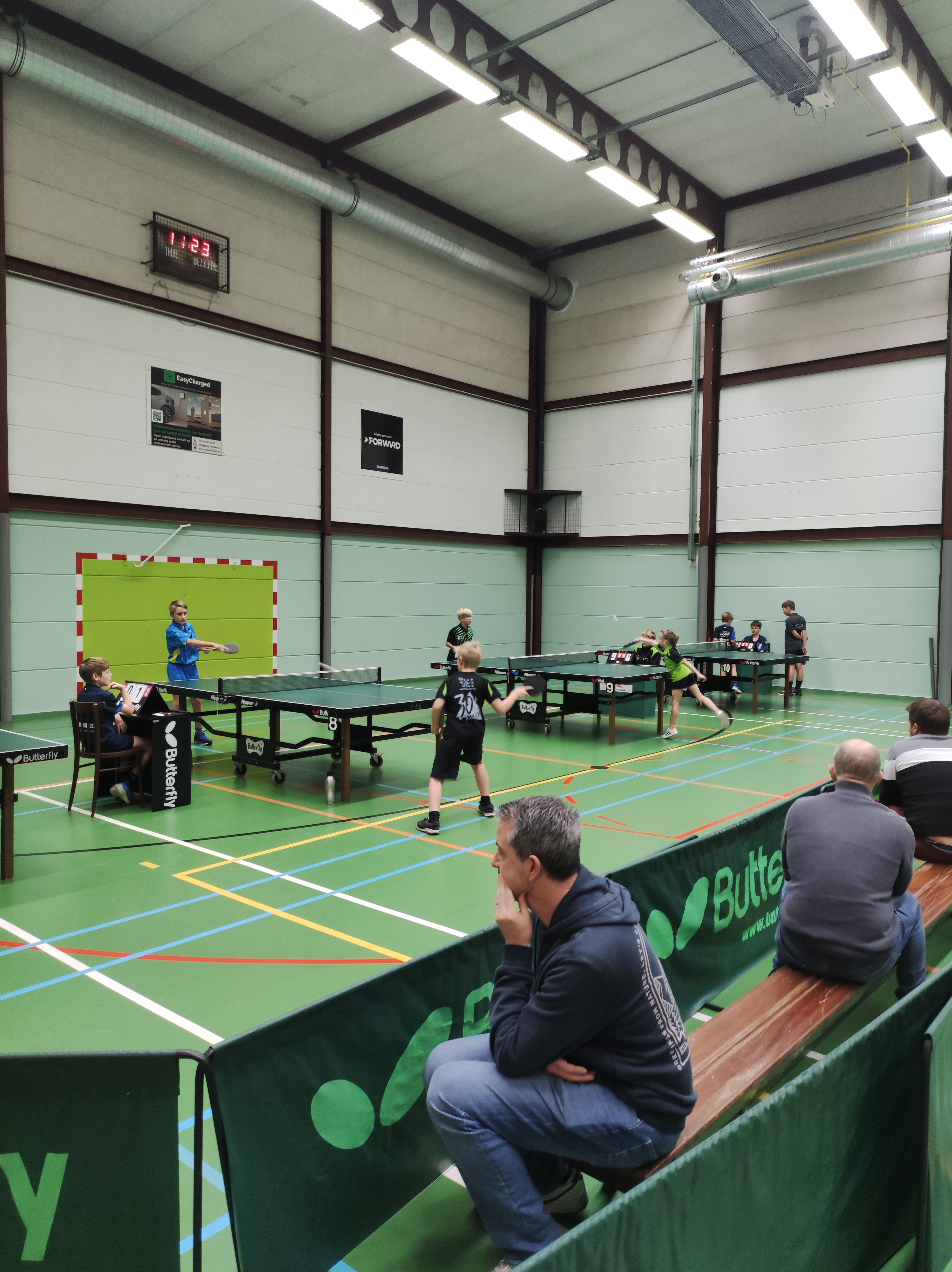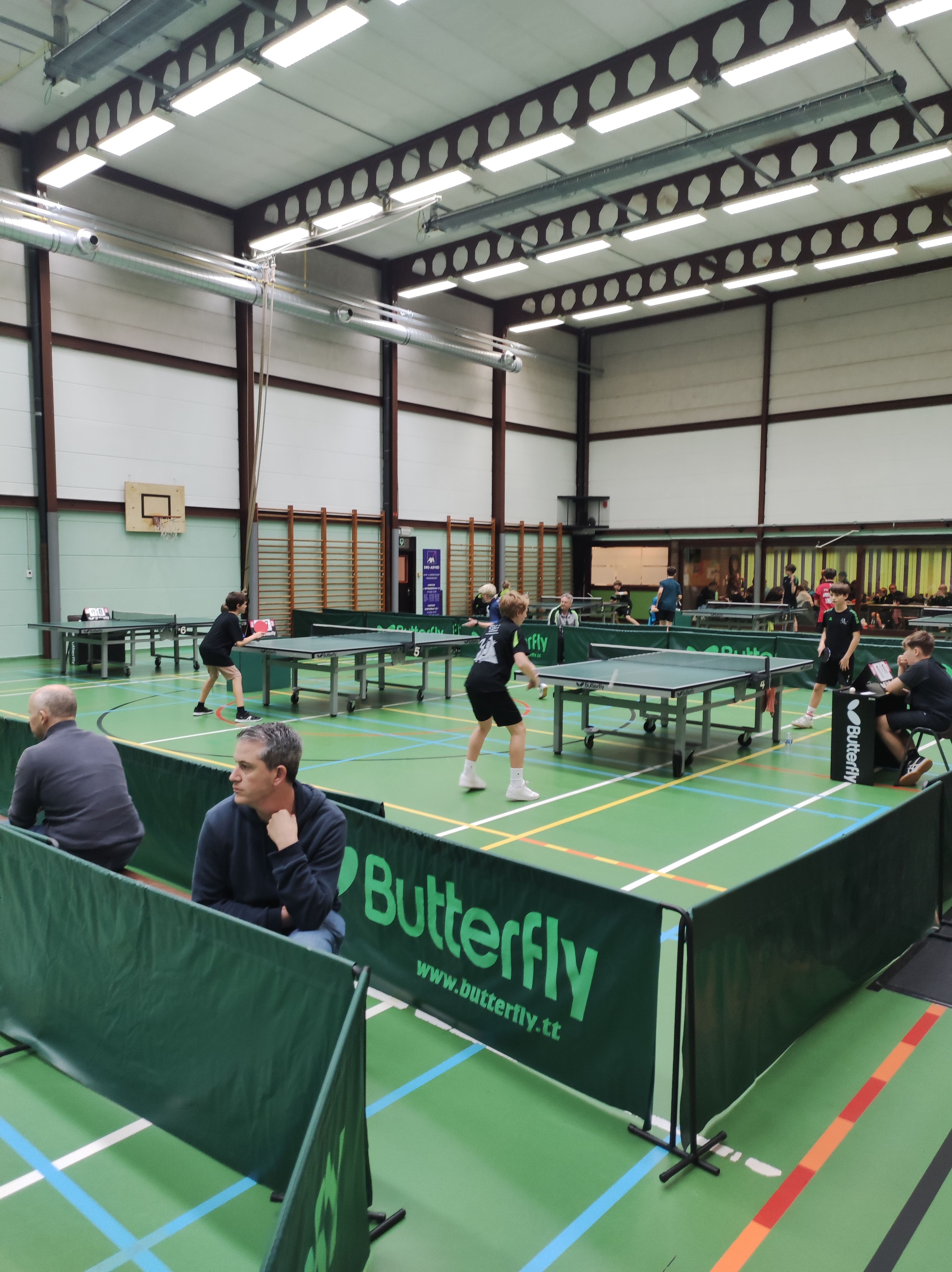 Onder leiding van Jos en Edwin ken de de competitie een vlot verloop met verschillende poules van 8 spelers mochten de spelers veel matchen afwerken. Met een kleine pauze halfweg, kon de laatste match afgefloten worden om 15.30 u.
